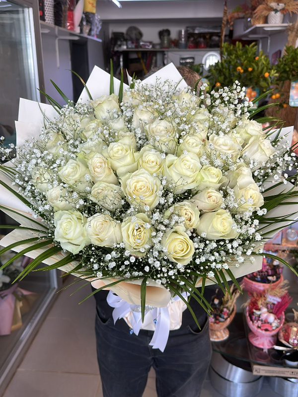 Uygun Fiyatlı Çiçekler Beyaz Gül Buketi