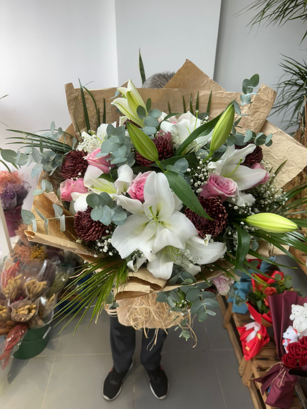 Lilyum Anastasia Pembe Gül Karışık Buket